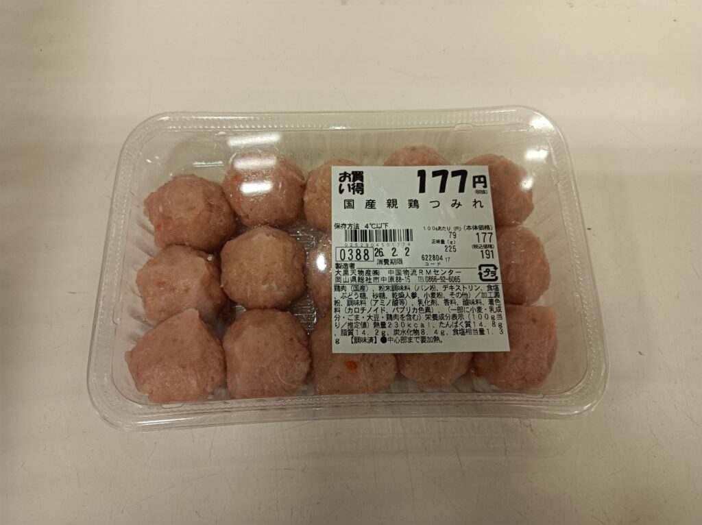 未分類 ラ・ムーの親鳥の商品写真 oyadori-kasiwa 2026年1月18日 / 2026年2月2日 国産親鳥小間切れ100グラム99円、1パックだいたい200グラム前後 国産親鳥小間切塩胡椒焼き用(もも・むね)100グラム82円、1パックだいたい200グラム前後 炭火焼風親かしわ(真空) 100グラムあたり税抜き149円 製造者 大黒天物産(株) 炭火焼風ヤゲン軟骨と親鳥もも味付 100グラムあたり税抜き119円 製造者 大黒天物産(株) 国産親鳥つみれ 100gあたり税抜79円 大黒天物産(株)